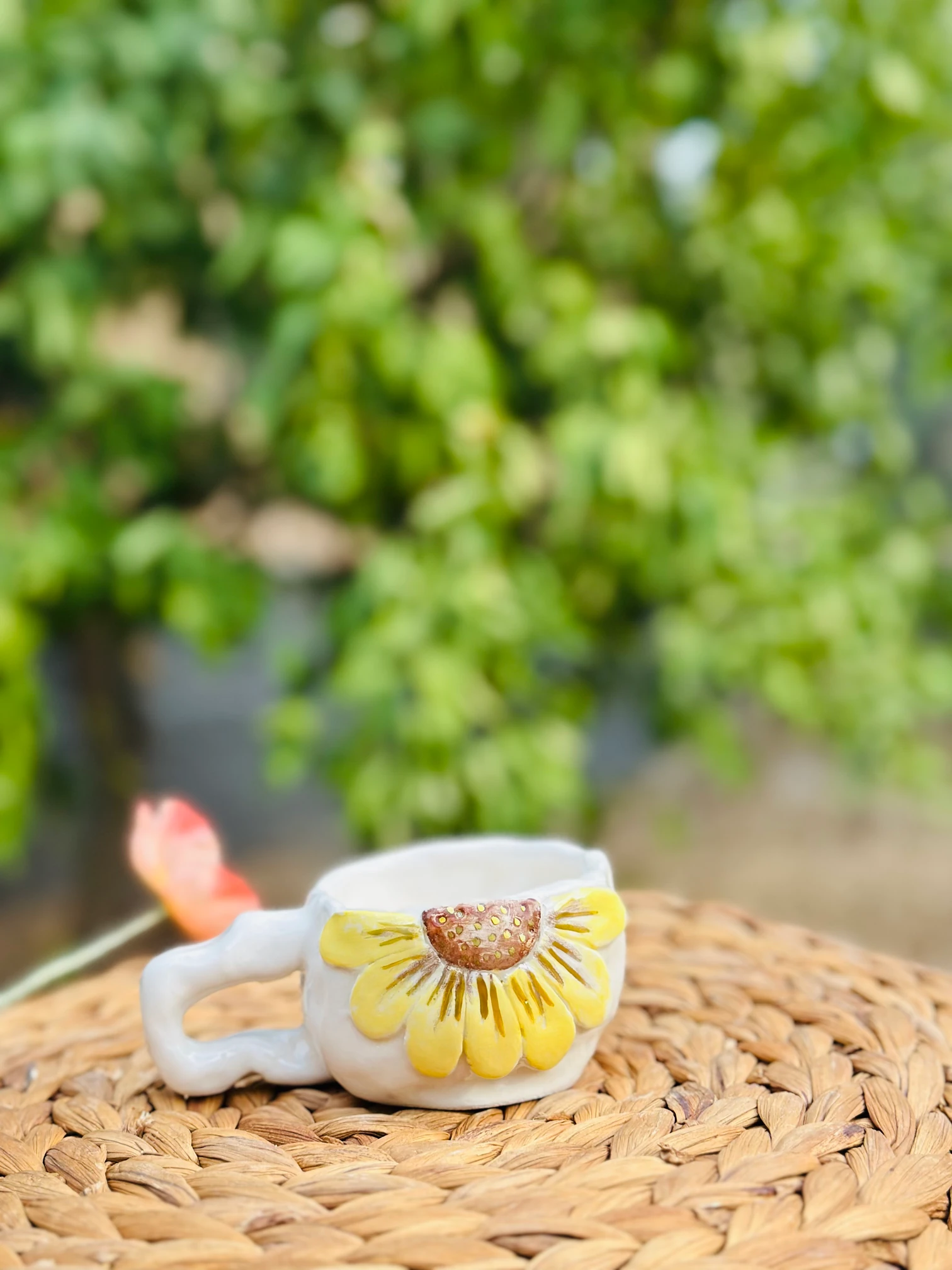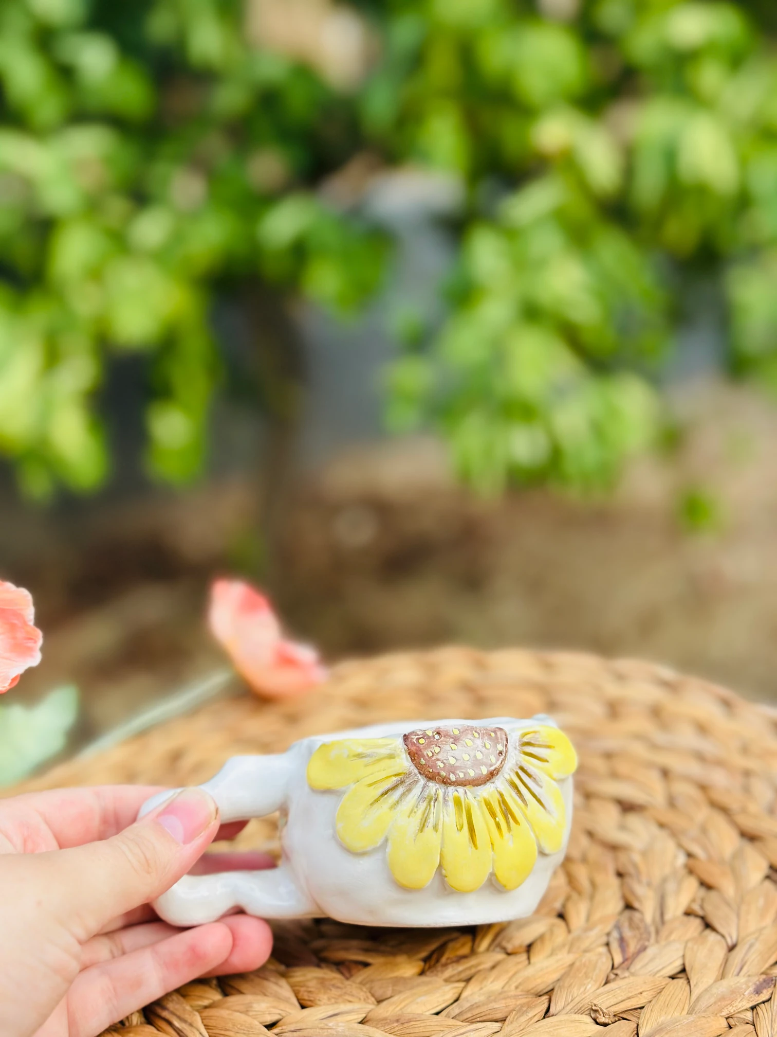Ayçiçeği el yapımı fincan, günlük kullanımda olduğu kadar özel davetlerde de tercih edilebilir. Misafirlerinize sunacağınız içecekler, bu şık fincanlarla daha da özel hale gelecektir.