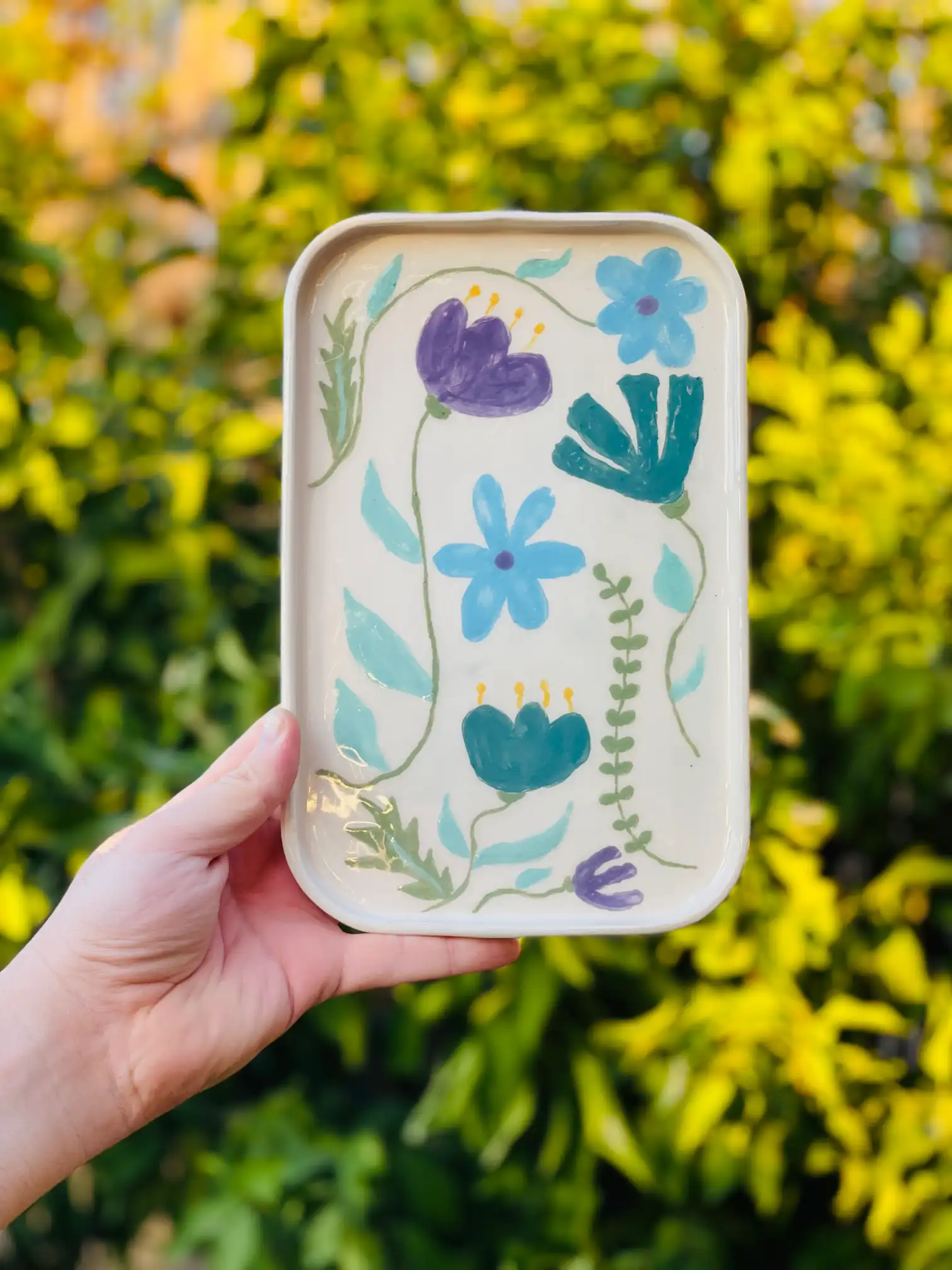 Bring the freshness of spring to your table with this handmade decorative plate, adorned with vibrant floral patterns.
