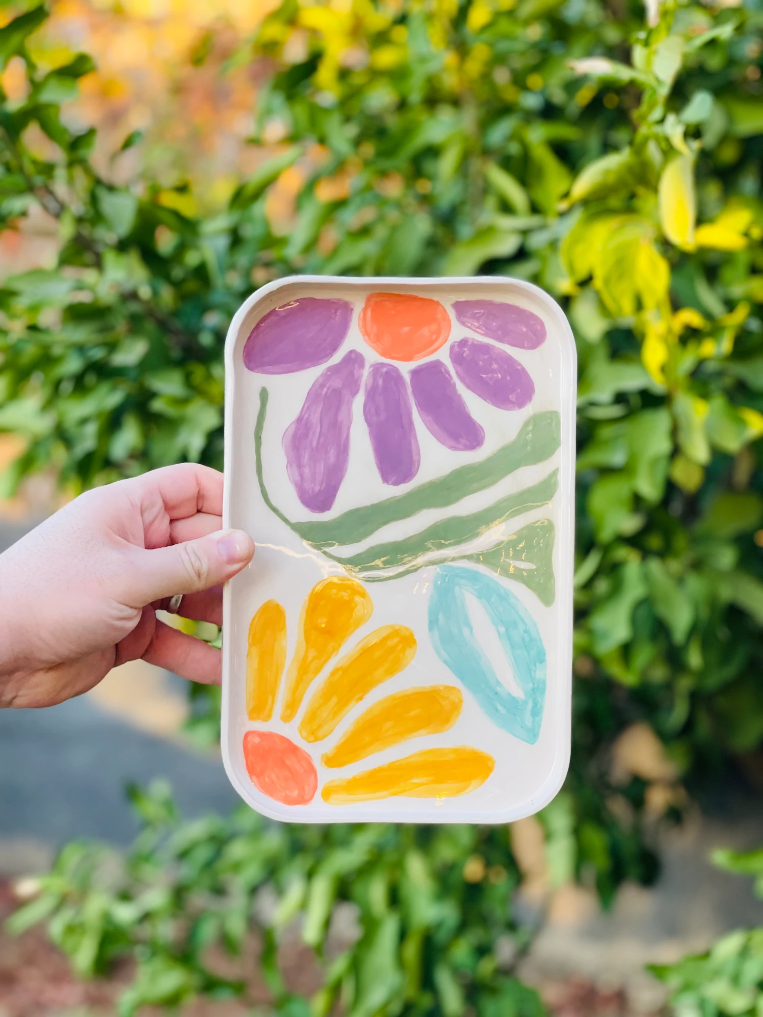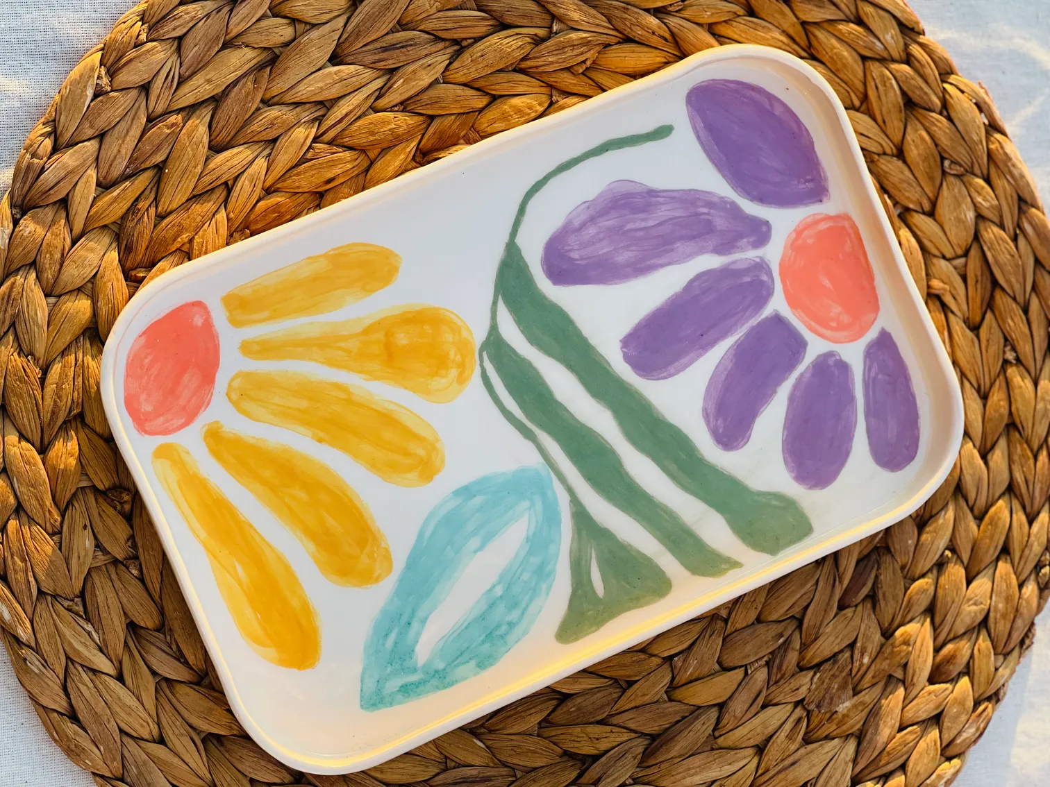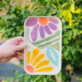 Renklerin enerjisini sofranıza taşıyan bu el yapımı dekoratif tabak, canlı çiçek motifleriyle hem kullanımda hem de dekorasyonda fark yaratıyor. ✨